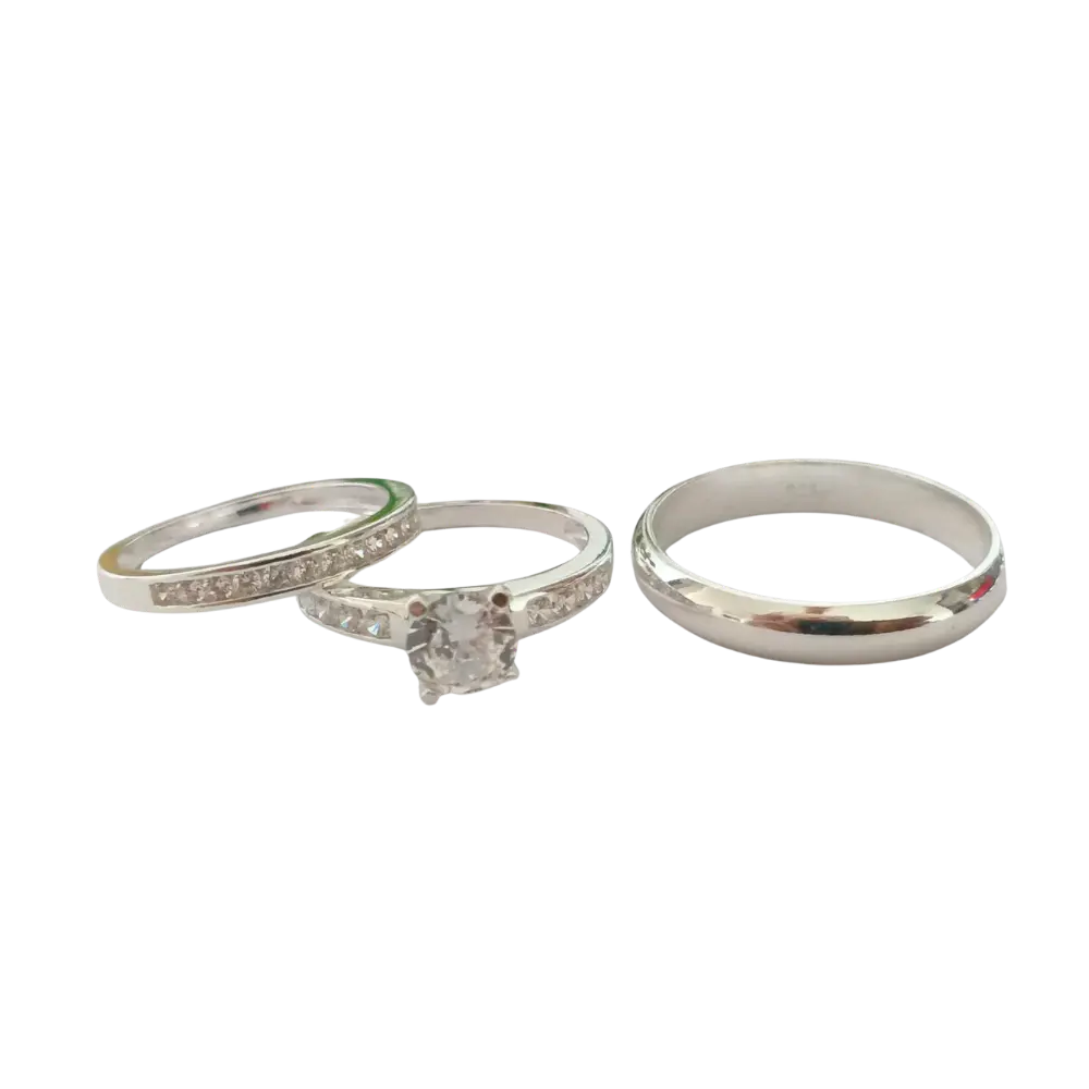 Dúo de anillos de matrimonio con circonia en plata italiana 925 – Estilo clásico