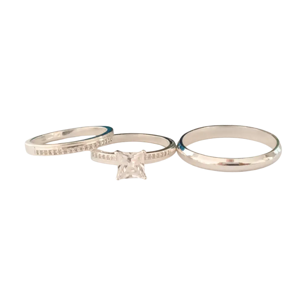 Dúo de anillos de promesa con circonia en plata italiana 925 – Estilo elegante