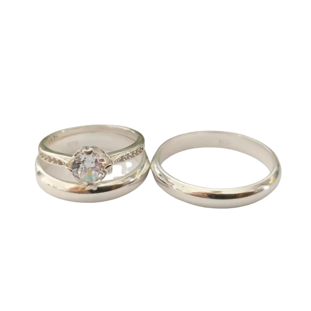 Trío de anillos de compromiso con circonia en plata 925 – Estilo moderno